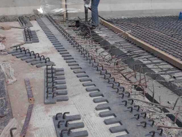 隨著我國(guó)交通運(yùn)輸事業(yè)的迅猛發(fā)展,橋梁作為交通線中的重要組成部分,其數(shù)量的增多、規(guī)模的擴(kuò)大更為明顯,而橋梁組成之一的伸縮裝置,用量也越來越大,使用范圍也越來越廣,形式也越來越多了。橋梁伸縮縫問題現(xiàn)在仍處于探索研究中,它對(duì)公路車道的平整度影響較大。為了改善路面與橋面相接處的平整度,一方面應(yīng)當(dāng)加大橋梁的聯(lián)孔長(zhǎng)度以減少伸縮縫的數(shù)量,另一方面要不斷改進(jìn)伸縮縫的型式、材料以及設(shè)計(jì)和施工質(zhì)量。