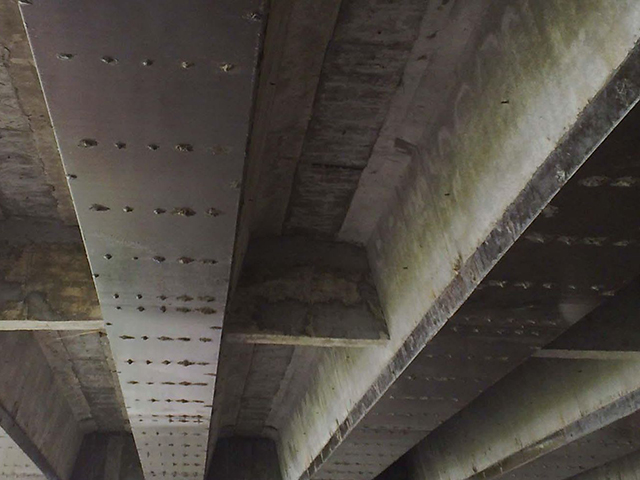 用粘結(jié)劑粘貼鋼板補(bǔ)強(qiáng)、加固的鋼筋混凝土結(jié)構(gòu)構(gòu)件,能大大提高其原設(shè)計(jì)承載力和抗破壞能力。這是因?yàn)檎迟N鋼板后,提高了原結(jié)構(gòu)構(gòu)件的配筋量,相應(yīng)就提高了結(jié)構(gòu)構(gòu)件的抗拉、抗彎、抗剪等方面的力學(xué)性能,而這些性能是靠結(jié)構(gòu)膠粘劑的良好粘結(jié)性能,把鋼板與混凝土牢固地粘結(jié)在一起,形成整體,有效地傳遞應(yīng)力,共同工作來(lái)保證的。